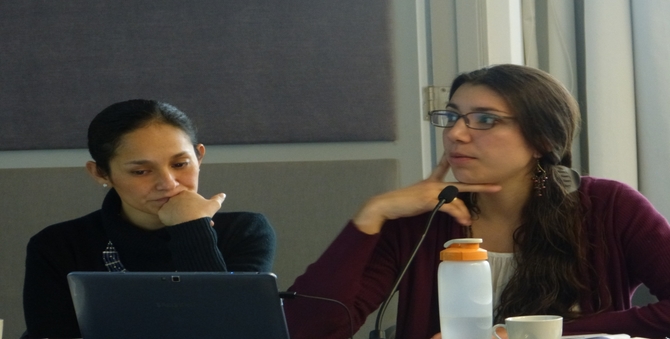 Foto: Mariluz Aparicio / Niños del Milenio Vanessa Rojas Arangoitia y Alexandra Cussianovich Zevallos, las autoras del Documento de Trabajo presentan