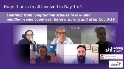 En este evento se hizo una introducción a las seis investigaciones que son parte de este estudio, que estuvo a cargo de Marta Favara de la Universidad de Oxford. Asimismo, se realizaron presentaciones de dos estudios, uno relacionado con el impacto del programa Jornada Escolar Completa en el desarrollo de habilidades, presentado por Jorge Agüero de la Universidad de Connecticut, y otro sobre el impacto de la calidad de la educación superior en los resultados de mercado laboral para jóvenes en Perú, presentado por Alan Sánchez de GRADE. Las investigaciones utilizaron datos existentes de Niños del Milenio, Ministerio de Educación y de un levantamiento de datos cualitativos con participantes de Niños del Milenio durante la pandemia. Las presentaciones y debates apuntaron a brindar nueva evidencia para la formulación y mejoramiento de las políticas públicas enfocadas en educación básica y superior, desarrollo de habilidades y acceso al mercado laboral para jóvenes. Las implicancias académicas y de política de los estudios fueron discutidas por Andrea Salazar (Ministerio de Educación), Mercedes Mateo (Banco Interamerciano de Desarrollo), Pablo Lavado (Universidad del Pacífico) y Martin Benavides (GRADE, ex Superintendente de la SUNEDU).