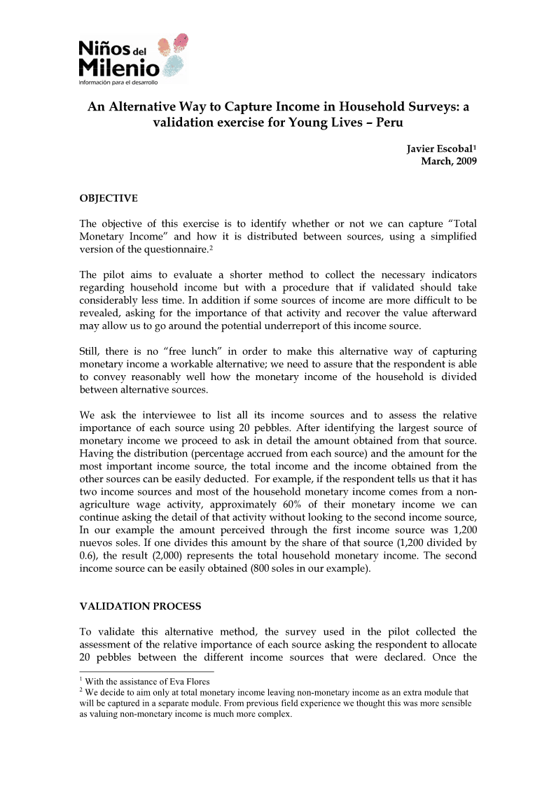 La Nota Técnica 18 presenta un análisis inicial de parte de la información cualitativa recogida en cuatro de los 20 distritos de Niños del Milenio en el Perú, entre agosto y diciembre del 2007. La recolección de datos se realizó con los dos grupos o cohortes de los niños que sigue el estudio Niños del Milenio: la cohorte menor, integrada por niñas y niños de cinco a seis años de edad en el 2007, y la cohorte mayor, conformada por niños y niñas de 11 a 13 años de edad. También se entrevistó a los cuidadores principales de los niños, sus profesores, representantes de su comunidad y otros niños que no son parte de la muestra.